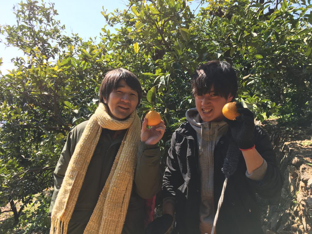 信太郎は「善兵衛農園」の七代目として普段は仕事をしていますが、ライフワークとしてこの「紀家わくわく」の運営もしています。みかんづくりと同じようにその土地の地域のコミュニティも大切にしたいと思っています。こちらは地元の農家や若者と大学生を巻き込みながらゆるやかな関係づくりをしています。
