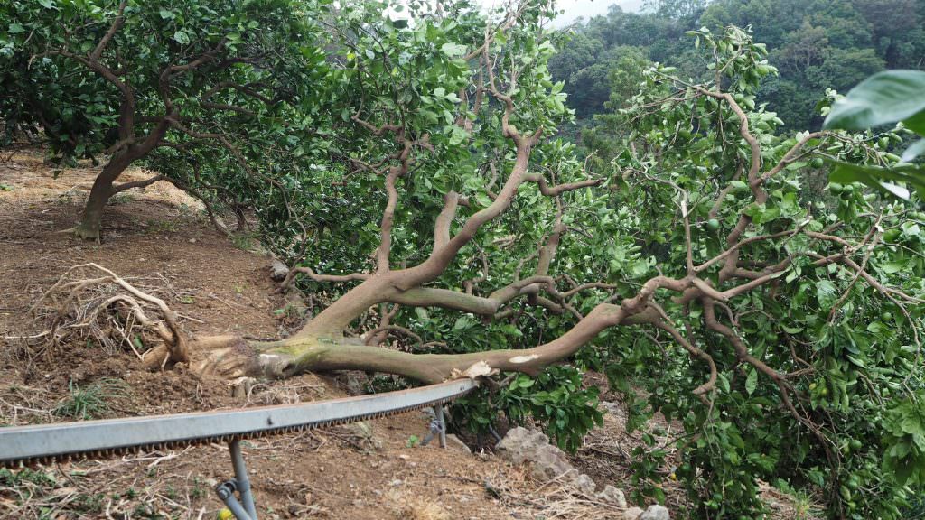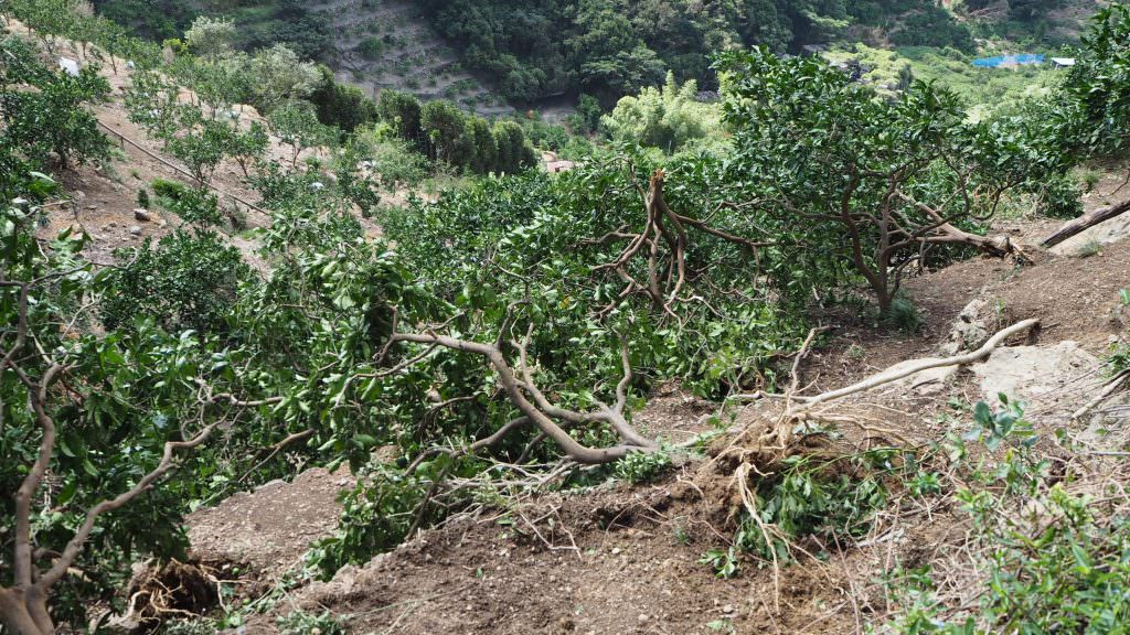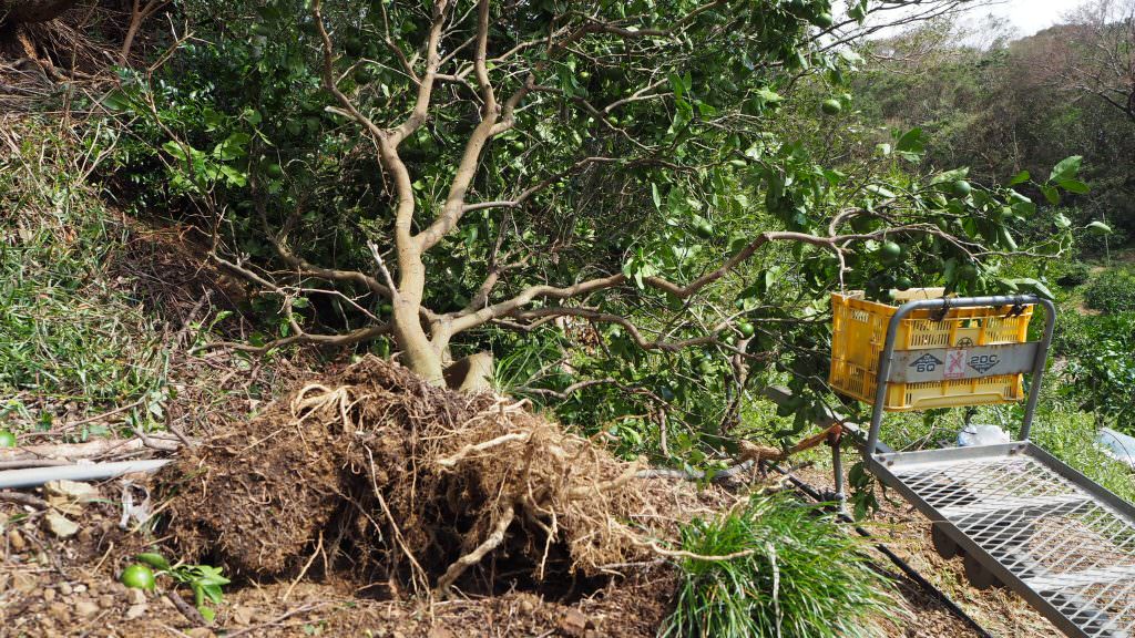 美味しいみかんづくりに適した南向きの畑は100本以上みかんの木が倒れてしまいました。