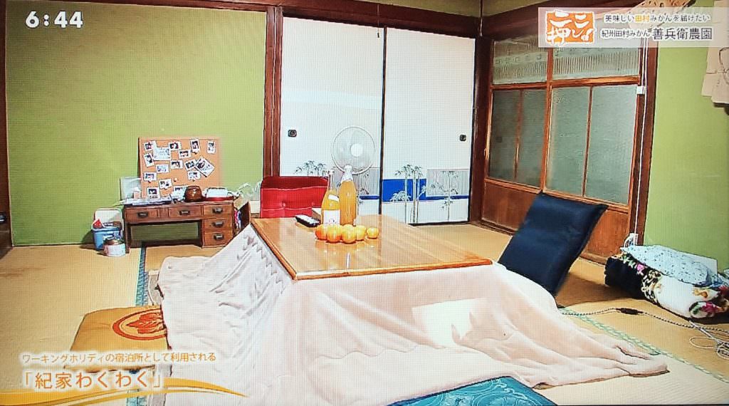 田村みかんの話を中心に、七代目の就農にいたるまでのことや善兵衛農園と連携しているコミュニティハウス紀家わくわく(ワーキングホリデー受入拠点)のことまで。約7分ほどの放送となりました。