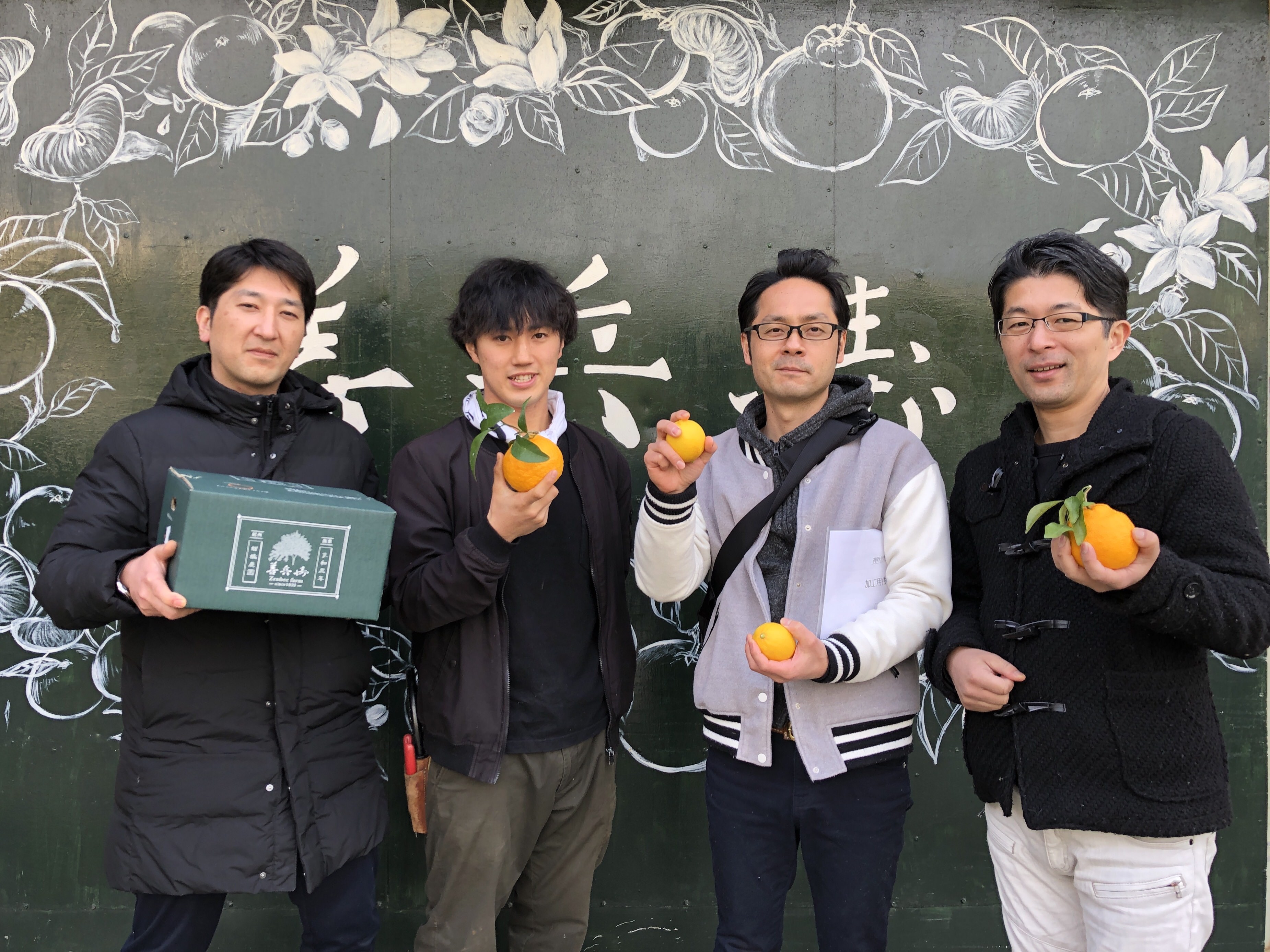 畑で清見や三宝柑を食べて倉庫では八朔などその他柑橘の食べ比べ。ずーっと話しっぱなし。